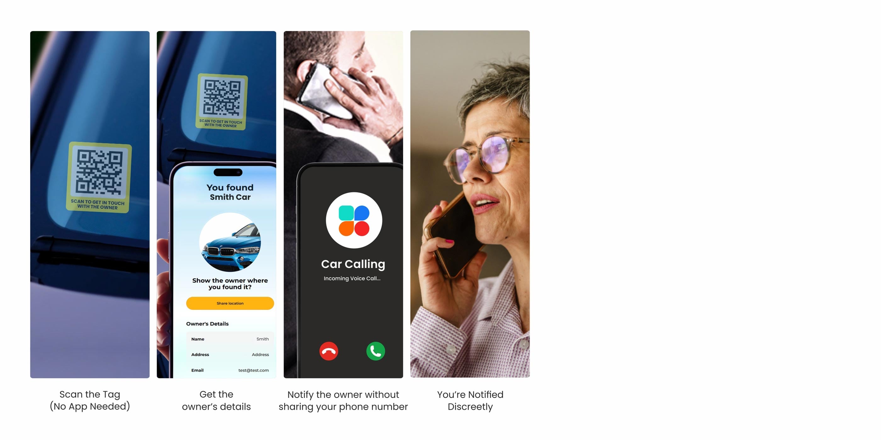 Blocked someone in? They scan your windscreen tag and can call or message you directly without ever seeing your phone number. Your number stays private. No more angry notes left on windscreens or unnecessary tow trucks. Perfect for tight parking spots, supermarket car parks, residential streets, and anywhere parking gets tricky. Masked communication keeps you safe and in control at all times. - Instant Scan Alerts