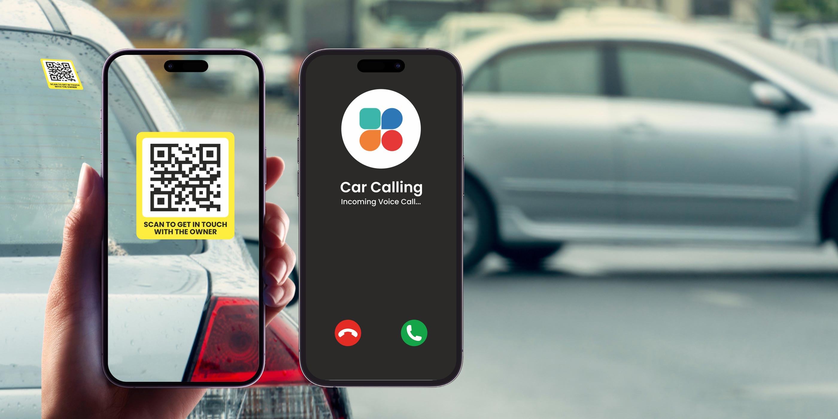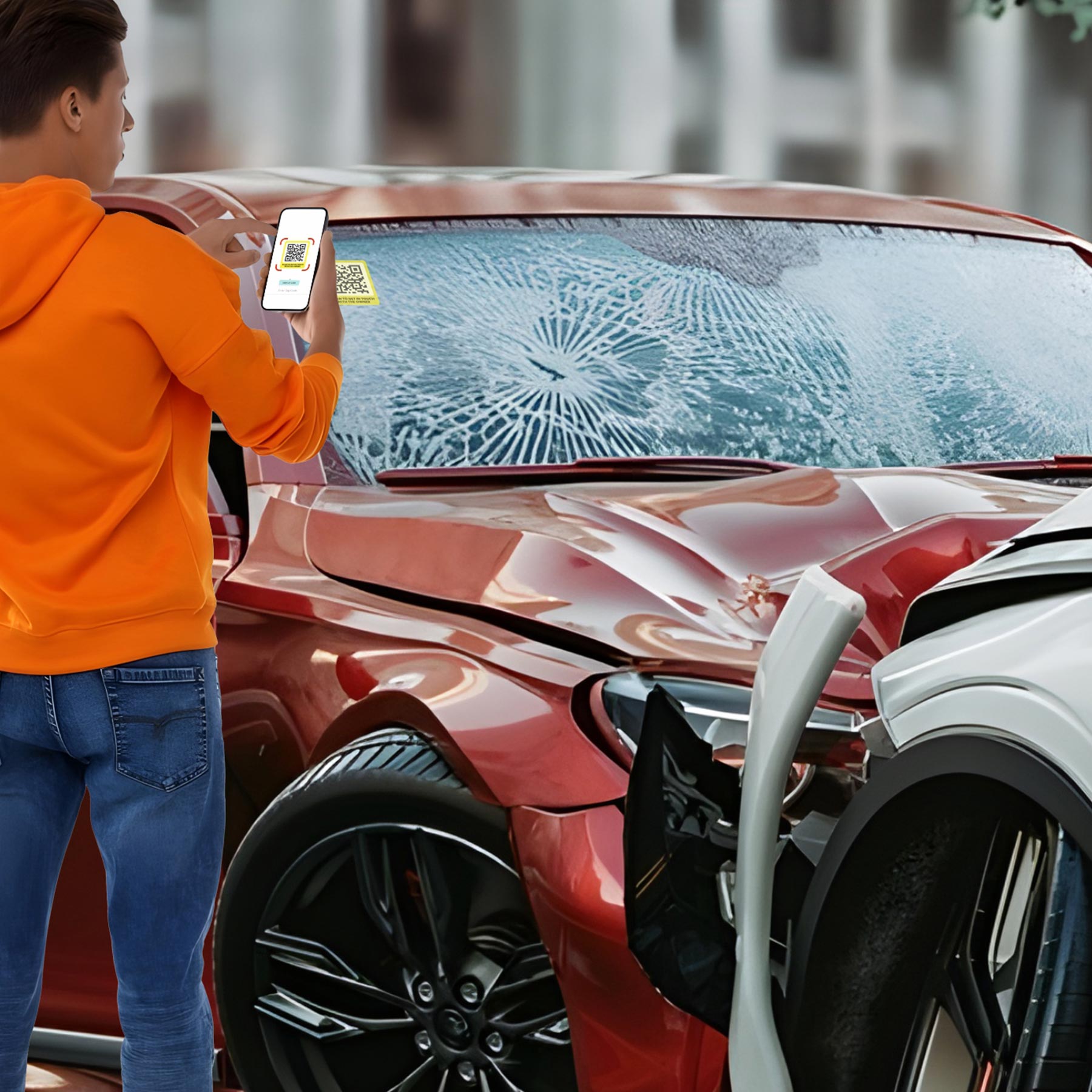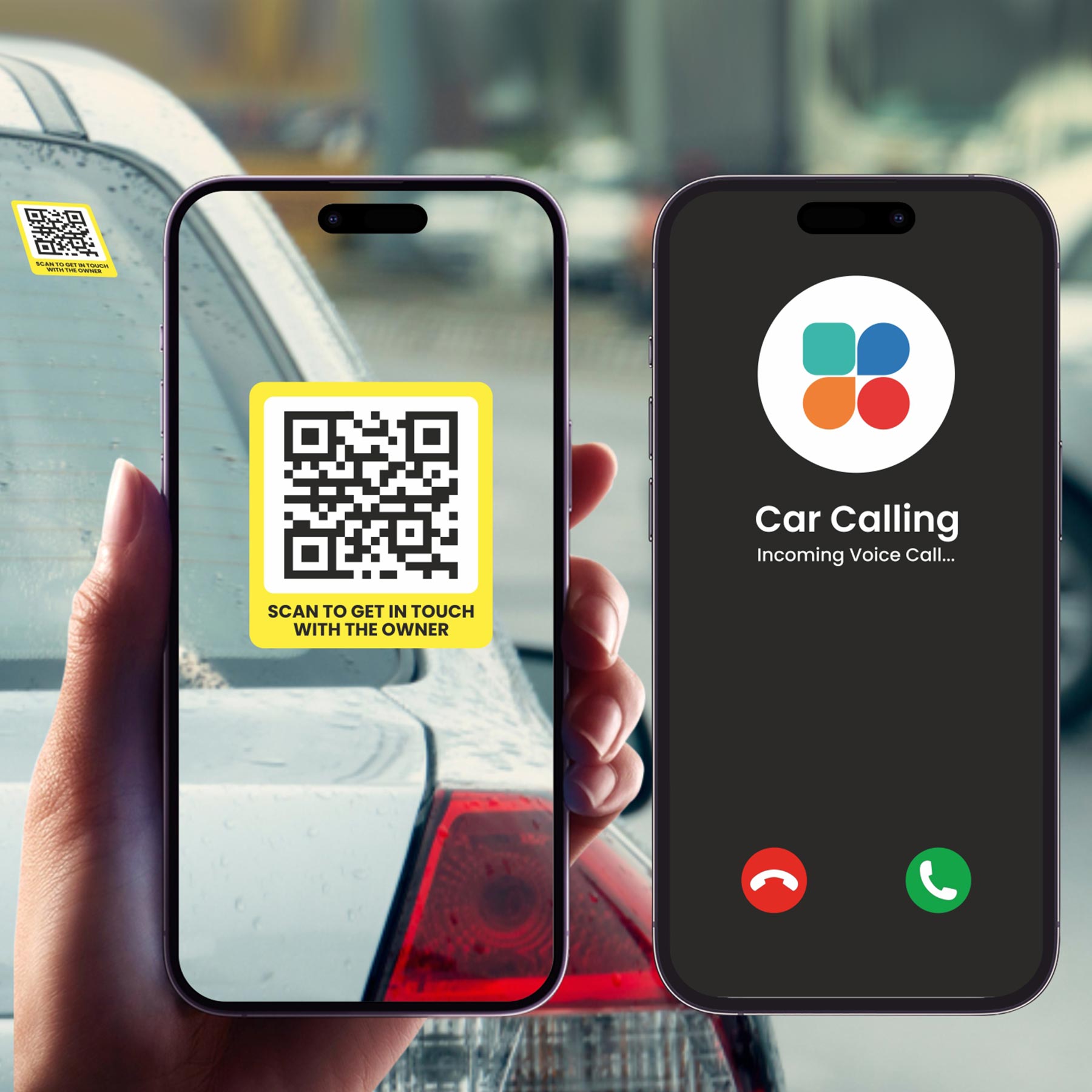 Letstrack Parking TAG: Smart QR sticker for easy parking communication. In case of block, accident, or emergency, anyone can scan to reach you instantly.