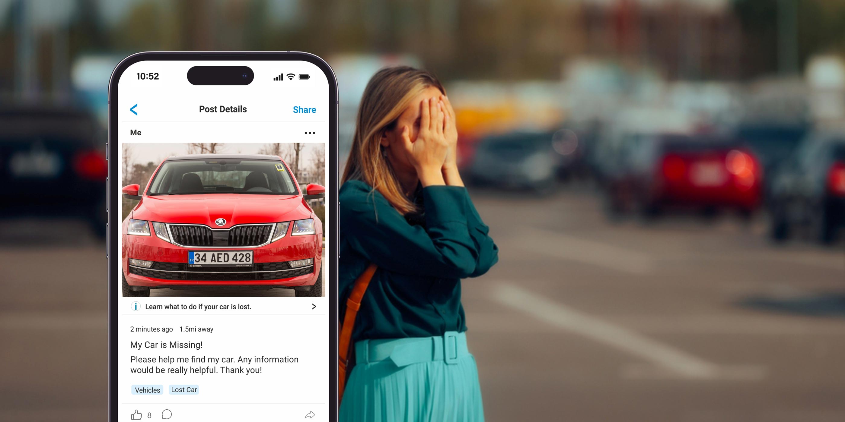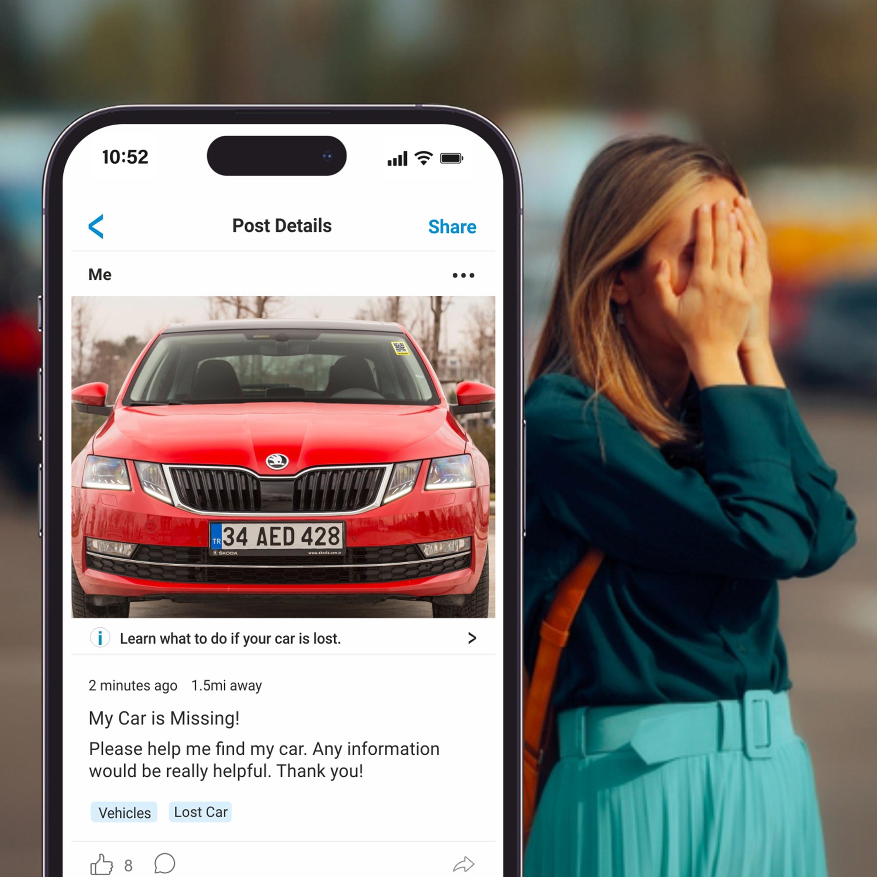 If your vehicle goes missing, Letstrack instantly creates a post with its picture and last known location, so nearby travellers can help through WhatsApp, Facebook, Instagram, Nextdoor, or any platform you choose.