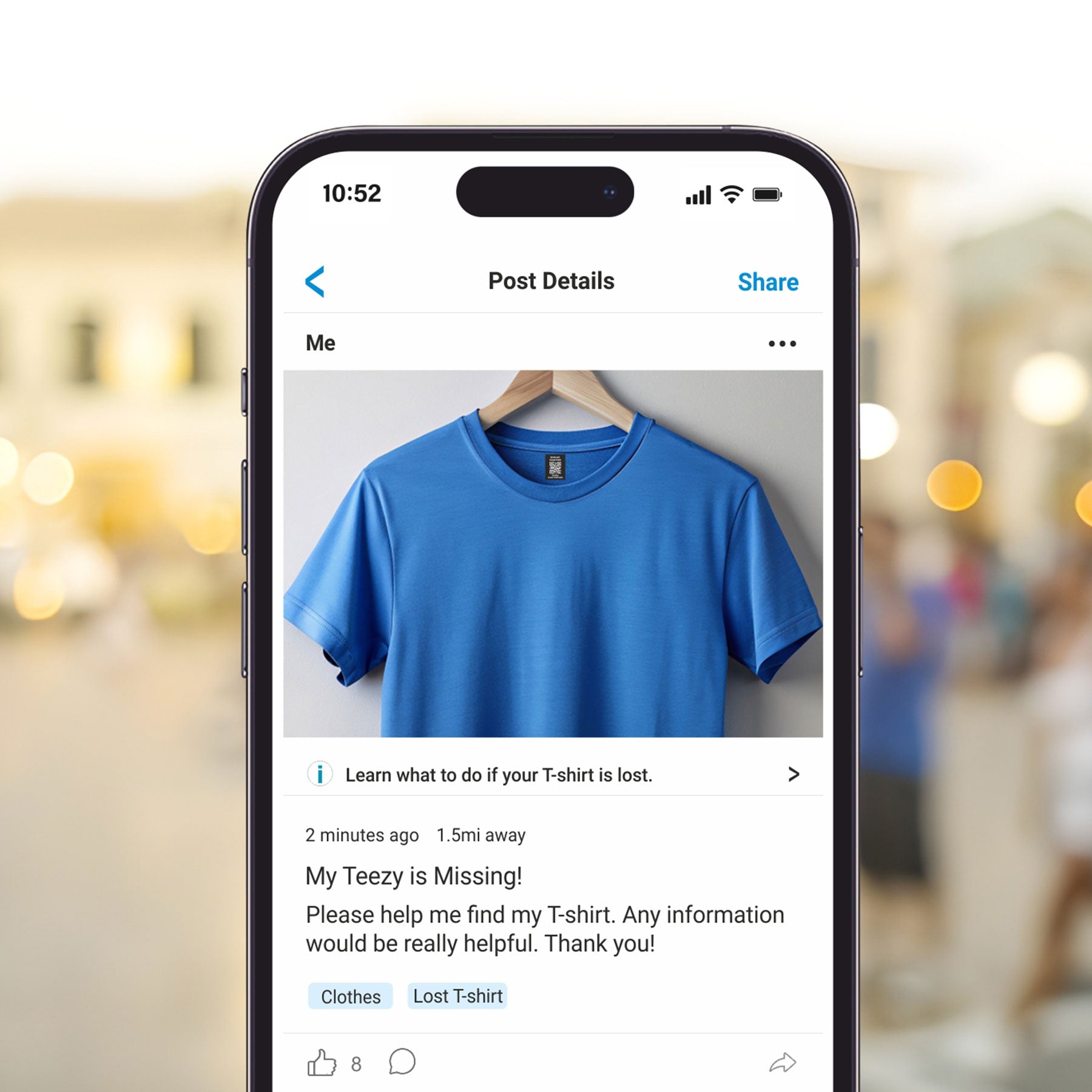 Mark was lost and shared instantly on WhatsApp, Facebook, or neighbourhood groups. Letstrack creates a post with the item photo and last location so nearby people can help you find it faster. - Perfect for All Clothing